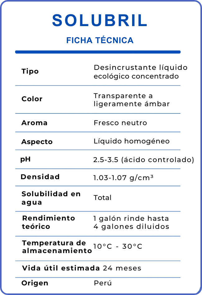 SOLUBRIL está diseñado para ofrecer limpieza profunda con menos esfuerzo, incluso en superficies con suciedad acumulada por años. Su fórmula concentrada actúa desde la base de la mugre adherida, logrando resultados visibles donde los limpiadores comunes fallan.